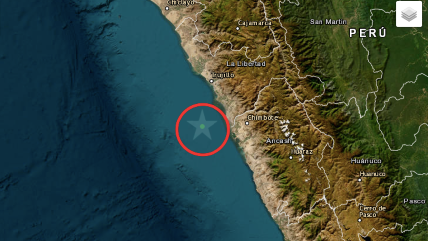 El primer sismo se registró a las 9:51 p.m. en Chimbote, al oeste de Perú. Apareció primero en IPauta