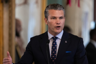 El secretario de Defensa de EE. UU. visitó el portaviones USS Gerald…