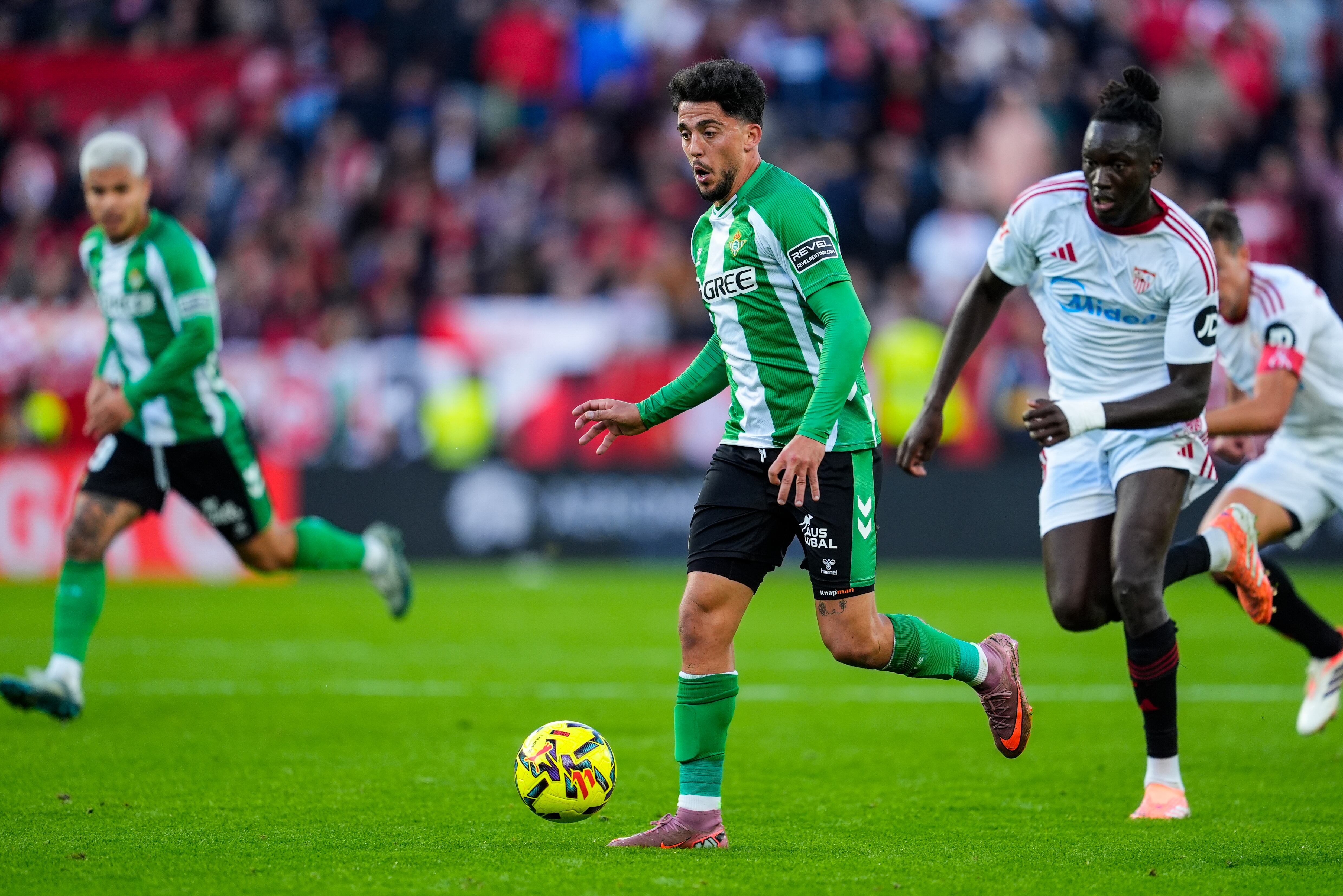 No hubo demasiados argumentos futbolísticos a los que agarrarse en un primer tiempo tedioso y aburrido. El Sevilla, consciente de sus limitaciones, se limitó a no fallar y ser más o menos contundente en defensa. Echó en falta, como no, a jugadores como Vargas. Pero si los locales añoraban a Vargas, las ausencias pesaron, y mucho, en el Betis. Sin Amrabat, Isco, Lo Celso y Antony, el cuadro de Pellegrini dejó mucho que desear.